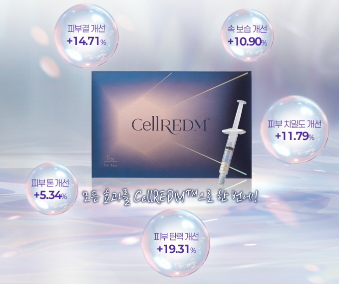 셀르디엠은 ECM(세포외기질) 성분을 피부 진피층에 직접 주입하여, 콜라겐, 엘라스틴, 히알루론산 등 피부의 '뼈대'를 구성하는 성분을 보충하고 무너진 피부 구조를 근본적으로 재건하는 피부 재생 솔루션입니다. 75µm의 초미세 입자를 사용해 통증을 줄이면서, 피부 속부터 탄력, 밀도, 결을 개선하는 원리입니다.